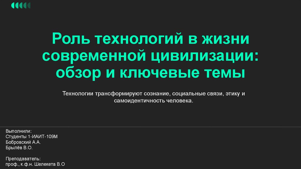 Роль технологий в жизнисовременной цивилизации: