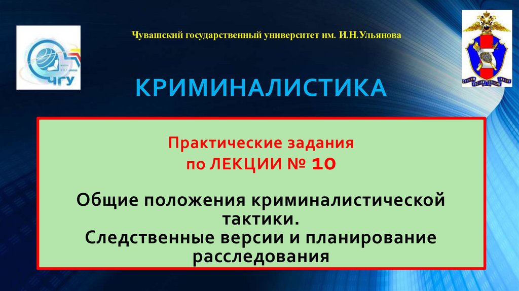 1. КРИМИНАЛИСТИКА Практические задания по ЛЕКЦИИ № 10 Общие положения криминалистической тактики. Следственные версии и