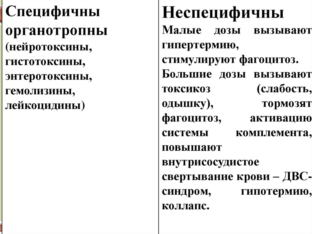 количества токсинов и ферментов, поступающих в