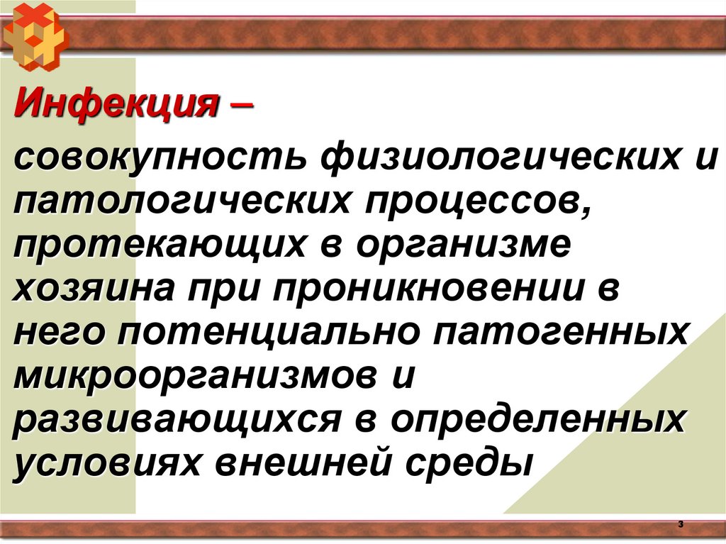 Инфекция –совокупность физиологических и
