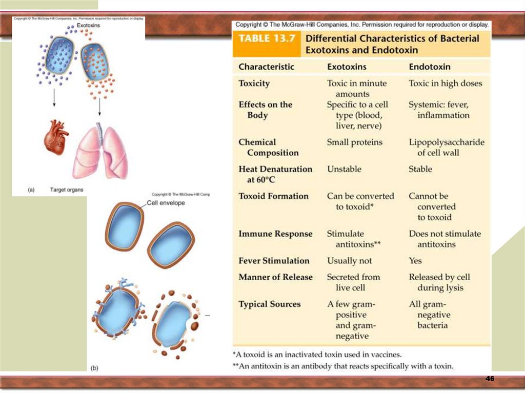 ферменты и токсины; в окружающую