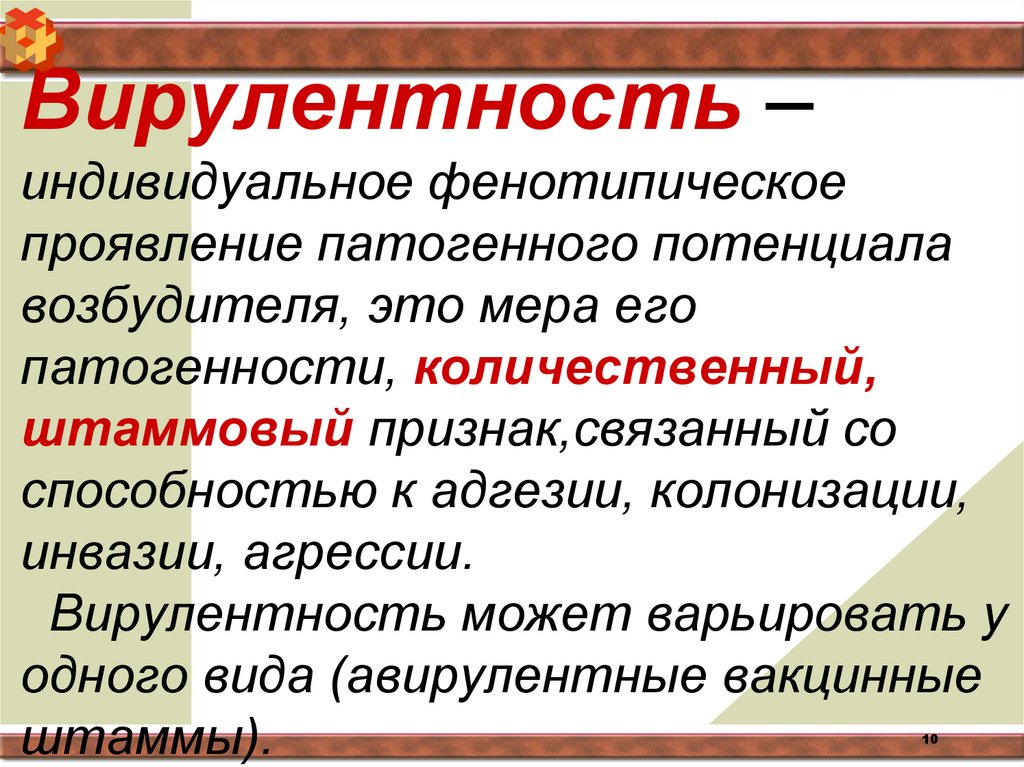 Вирулентность –индивидуальное фенотипическое