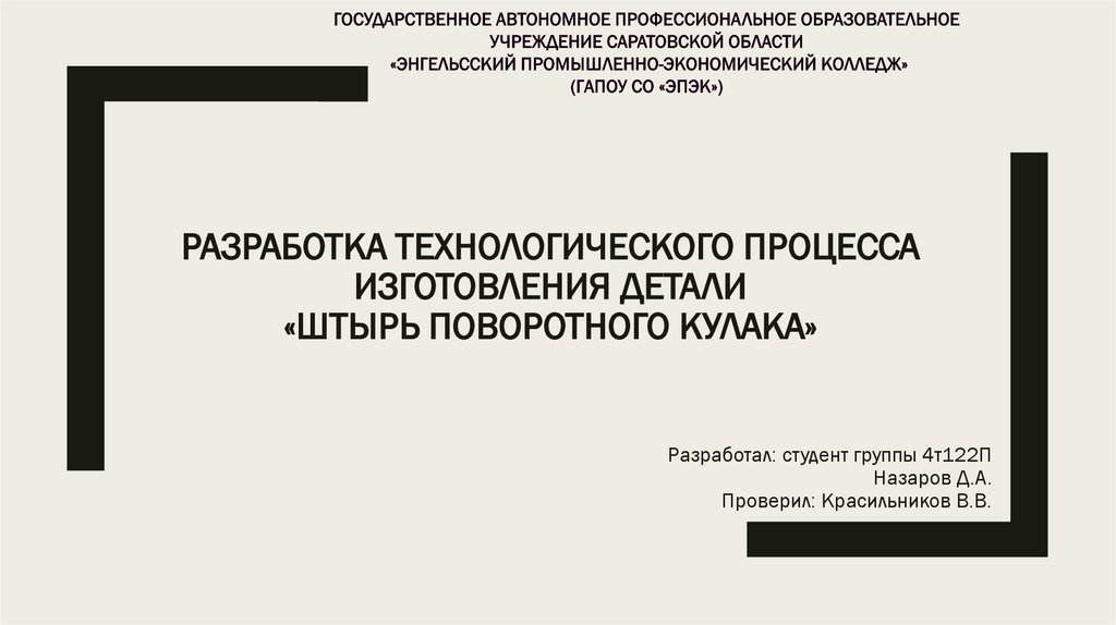 РАЗРАБОТКА ТЕХНОЛОГИЧЕСКОГО ПРОЦЕССАИЗГОТОВЛЕНИЯ ДЕТАЛИ