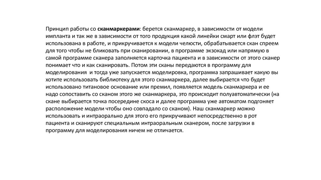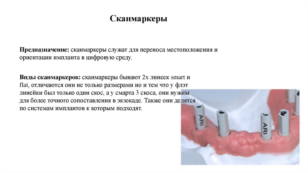 Принцип работы со сканмаркерами: берется сканмаркер, в зависимости от моделиимпланта и так же в зависимости от того продукция какой линейки смарт или флэт будет