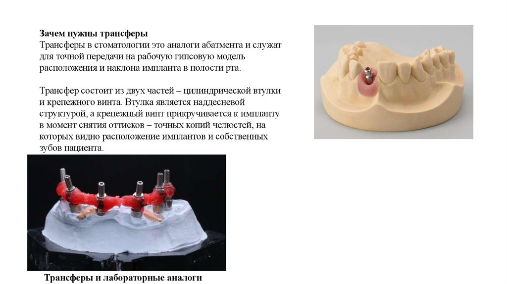 Зачем нужны трансферыТрансферы в стоматологии это аналоги абатмента и служат
