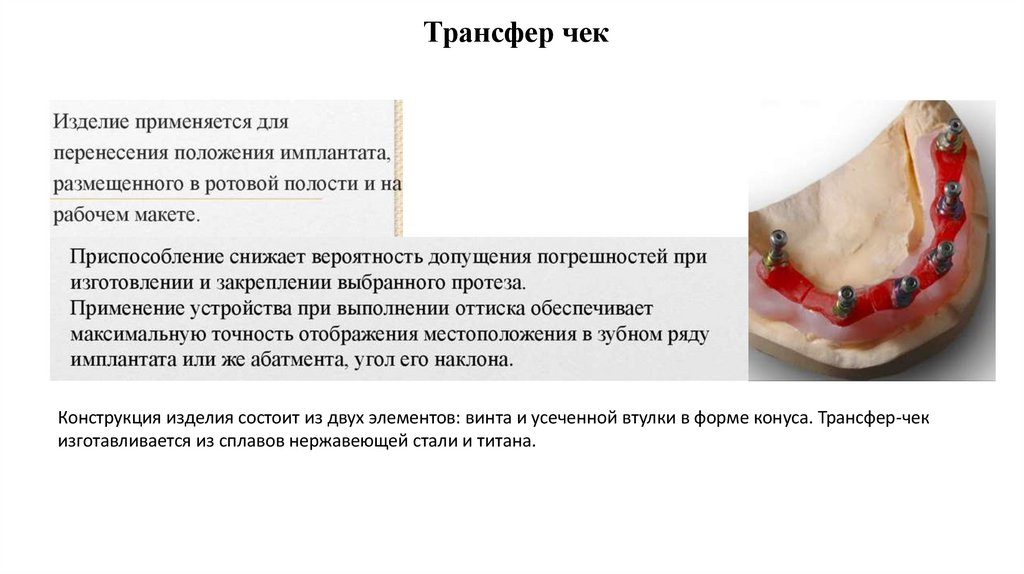 создает слепочный трансфер чек (в стоматологии часто их называют