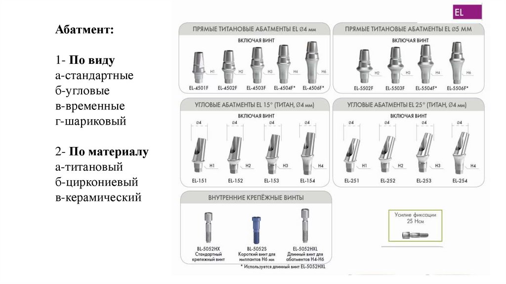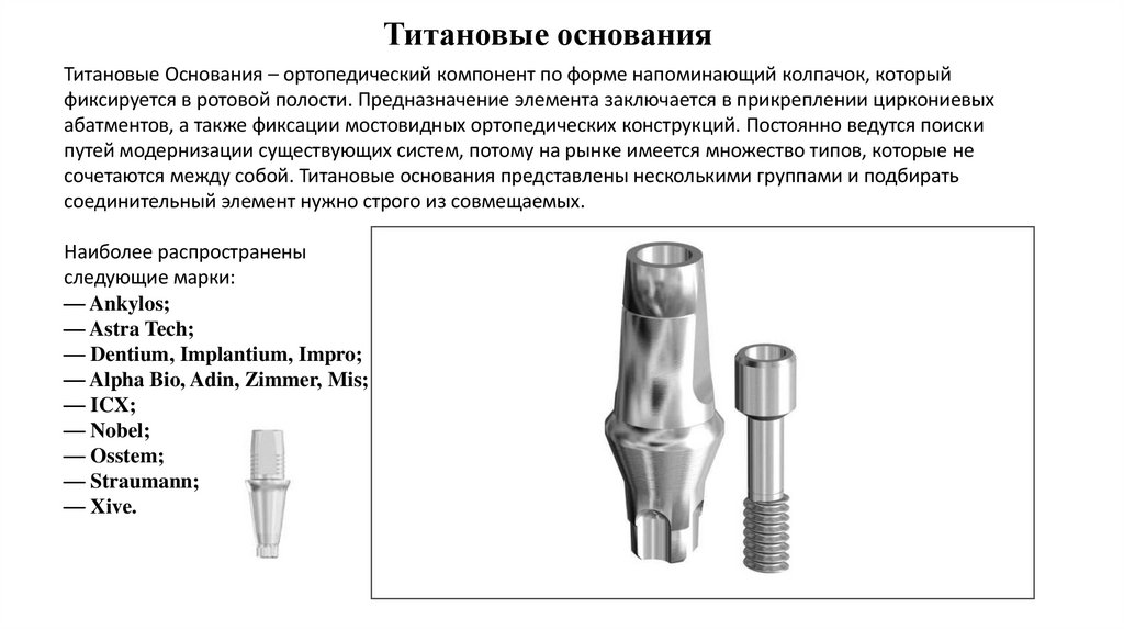 сочетаются между собой. Титановые основания представлены несколькими группами и подбирать