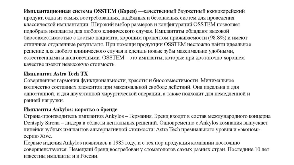 естественными и долговечными. OSSTEM – это импланты, которые при достаточно хорошем