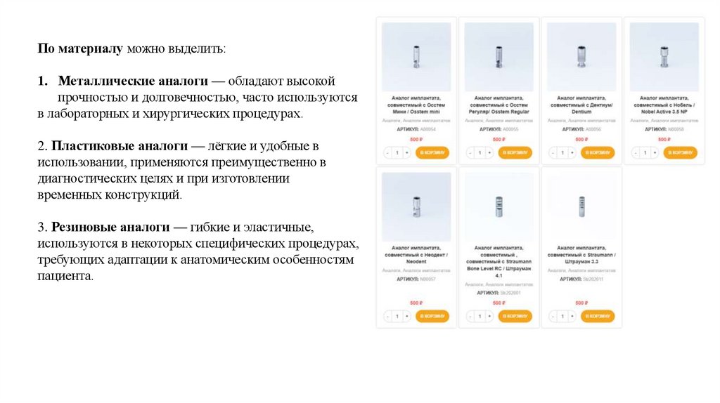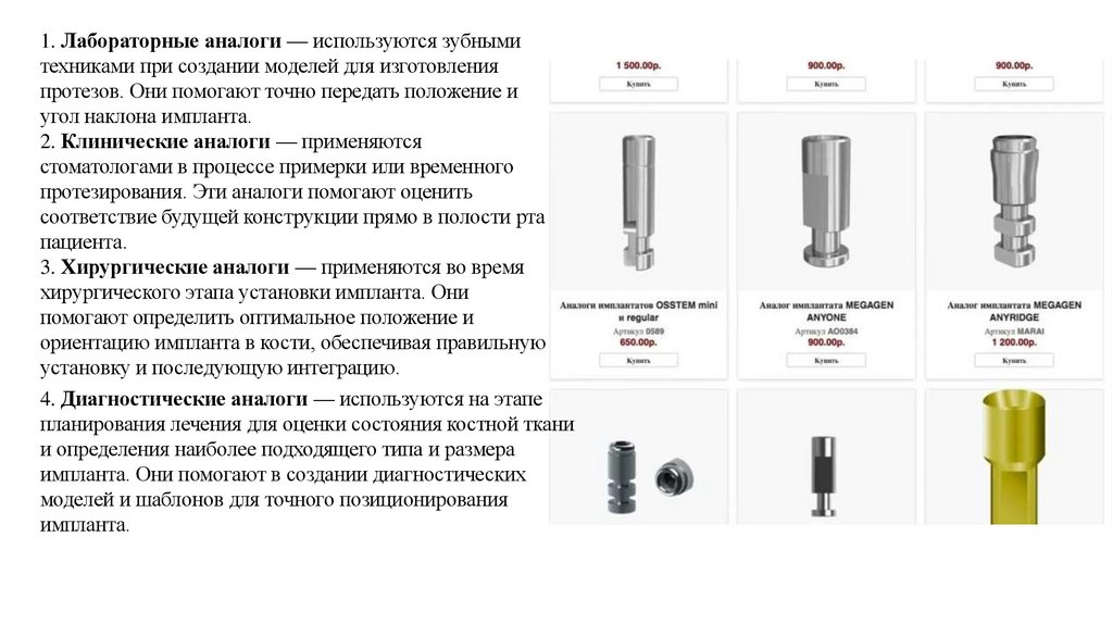 1. Лабораторные аналоги — используются зубнымитехниками при создании моделей для изготовления