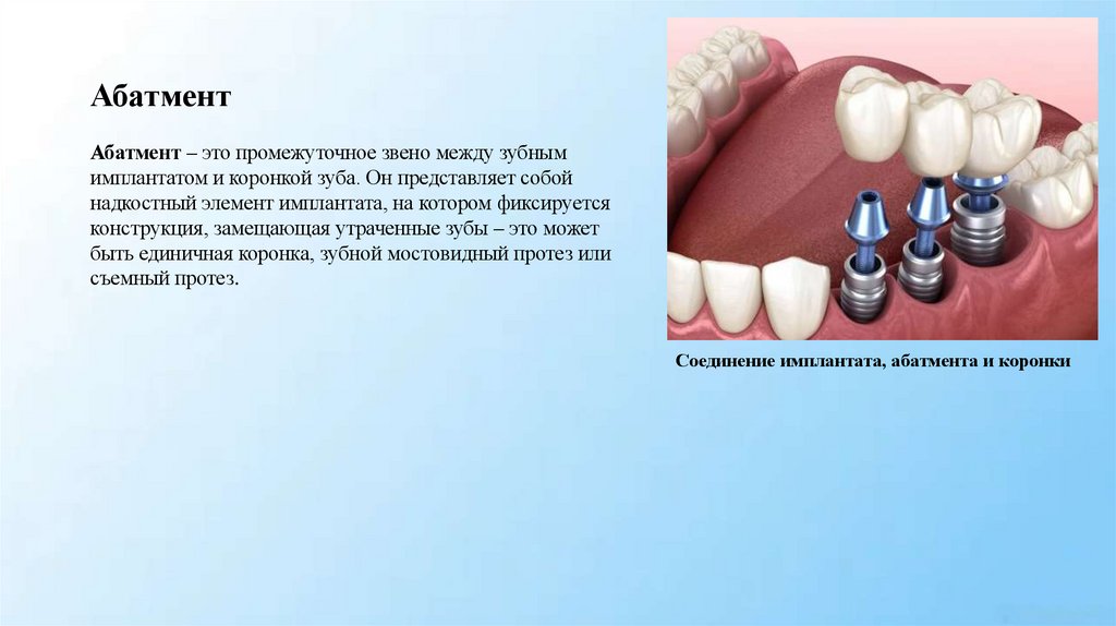 Прямые абатменты устанавливаются преимущественно во фронтальные отделы