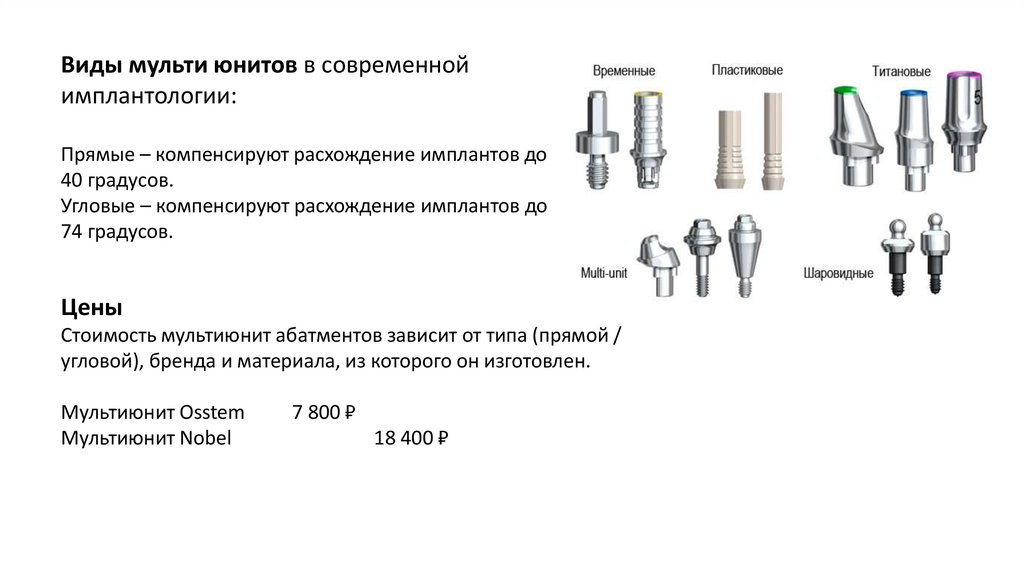 Стоимость мультиюнит абатментов зависит от типа (прямой /