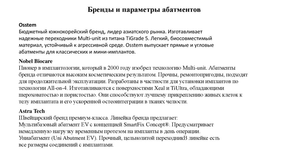абатментов, а также фиксации мостовидных ортопедических конструкций. Постоянно ведутся поиски