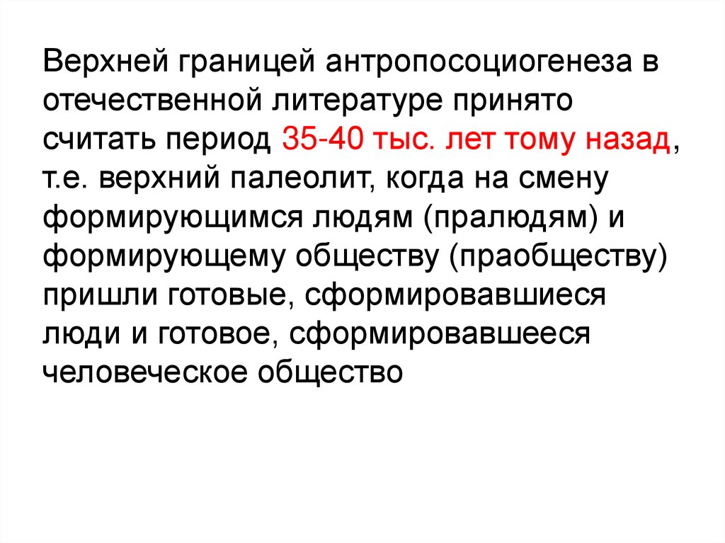 Верхней границей антропосоциогенеза вотечественной литературе принято