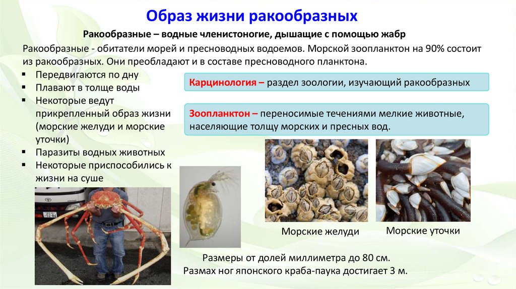 Ракообразные - обитатели морей и пресноводных водоемов. Морской зоопланктон на 90% состоит