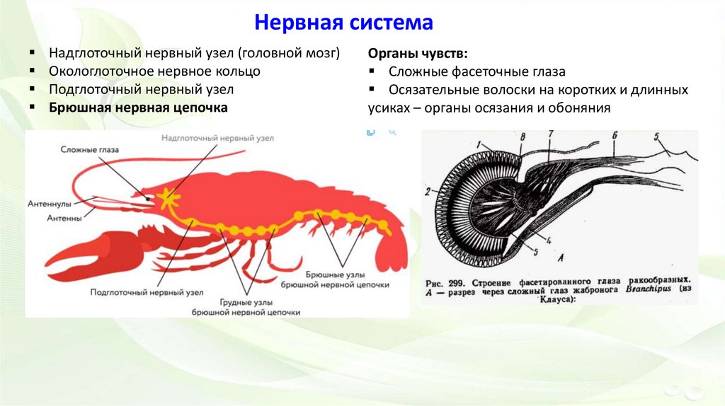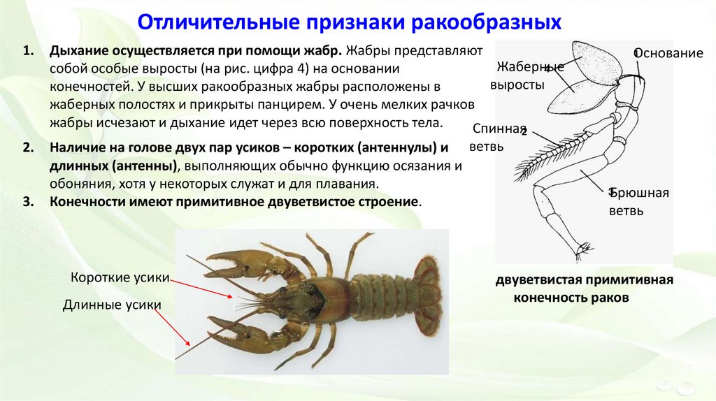 Наличие на голове двух пар усиков – коротких (антеннулы) и ветвь