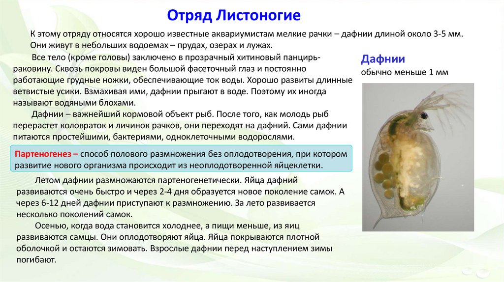 Летом дафнии размножаются партеногенетически. Яйца дафний
