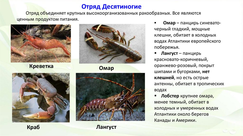 Отряд ДесятиногиеОтряд объединяет крупных высокоорганизованных ракообразных. Все являются