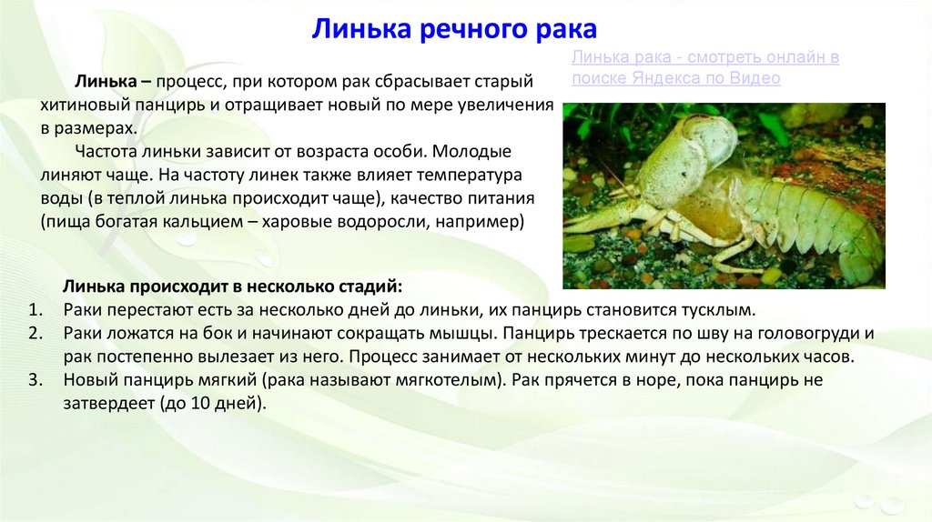Линька речного ракаЛинька – процесс, при котором рак сбрасывает старый