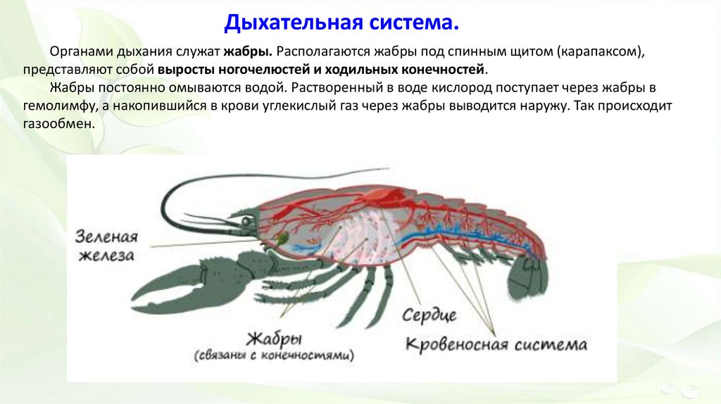 Дыхание осуществляется при помощи жабр. Жабры представляют