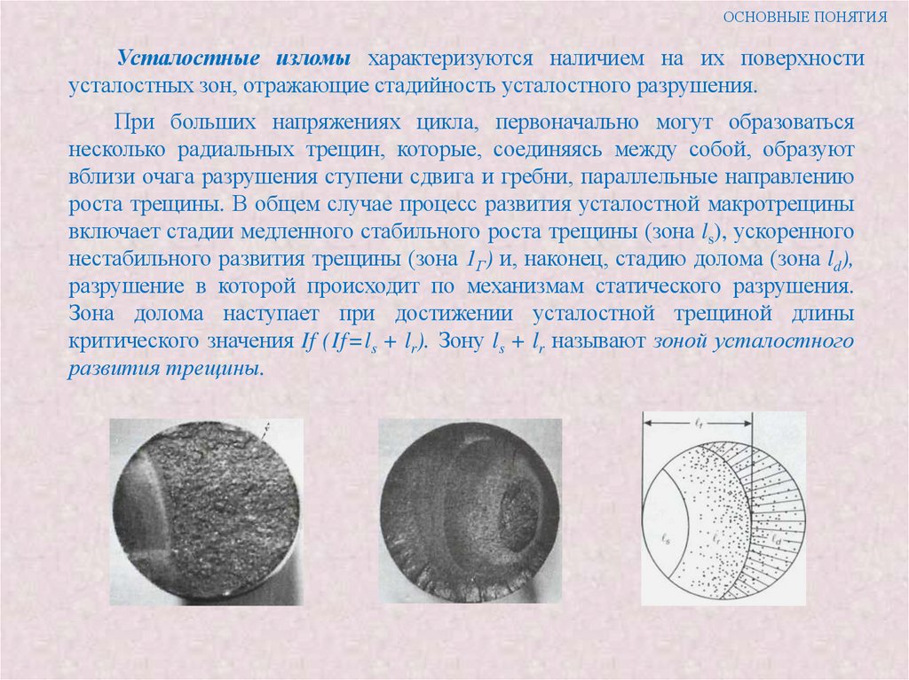 1. В строении излома находят четкое отражение все стадии процесса разрушения и поэтому
