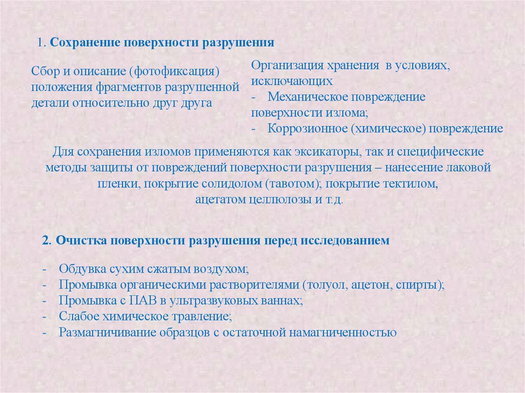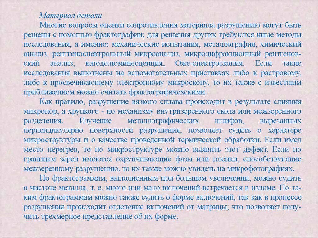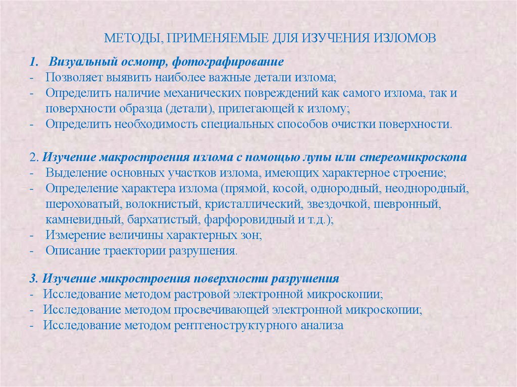 исследования. Изучение изломов может дополняться и сопровождаться другими