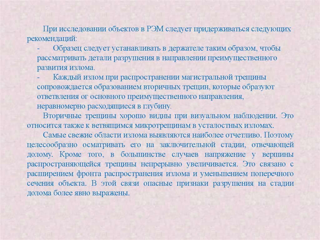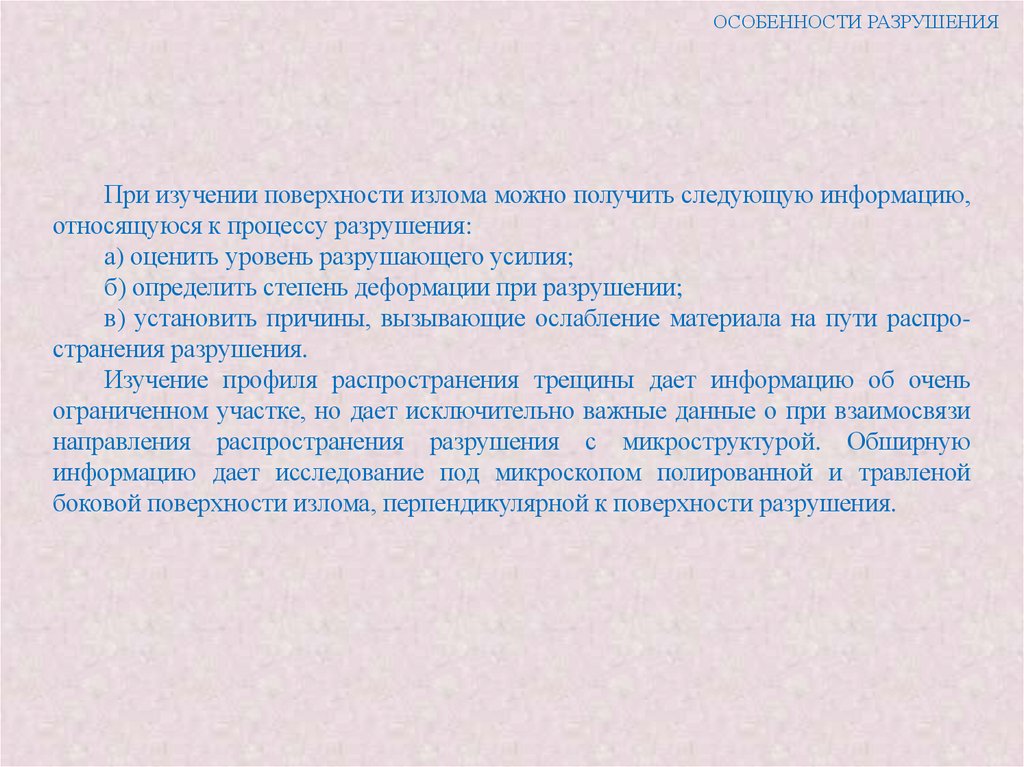 анализ строения изломов является единственным методом, с помощью которого после