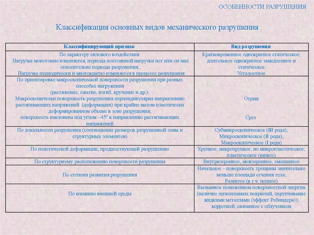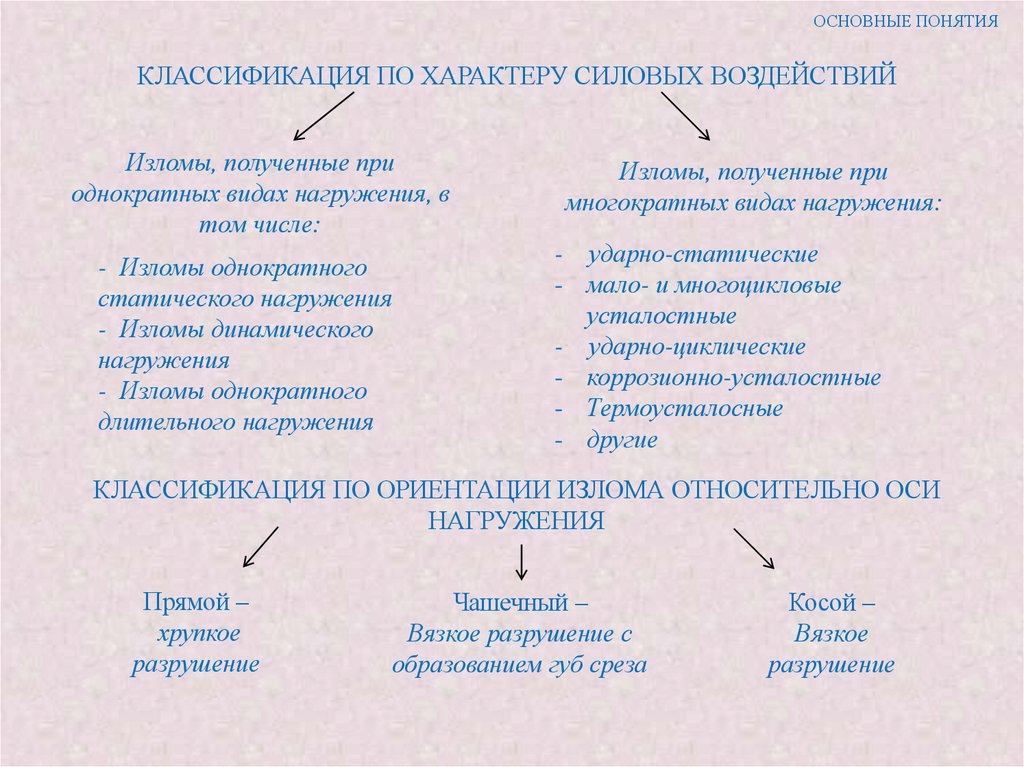 ОСНОВНЫЕ ПОНЯТИЯКЛАССИФИКАЦИЯ ИЗЛОМОВ ПО ПРИРОДЕ СИЛОВЫХ ВОЗДЕЙСТВИЙ
