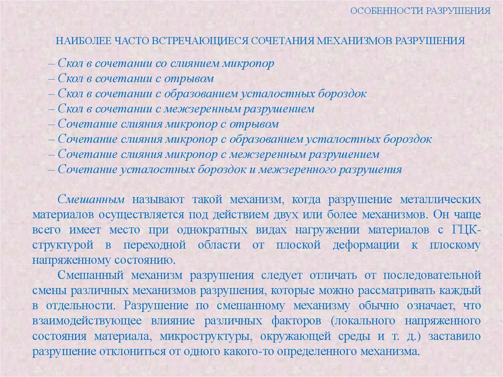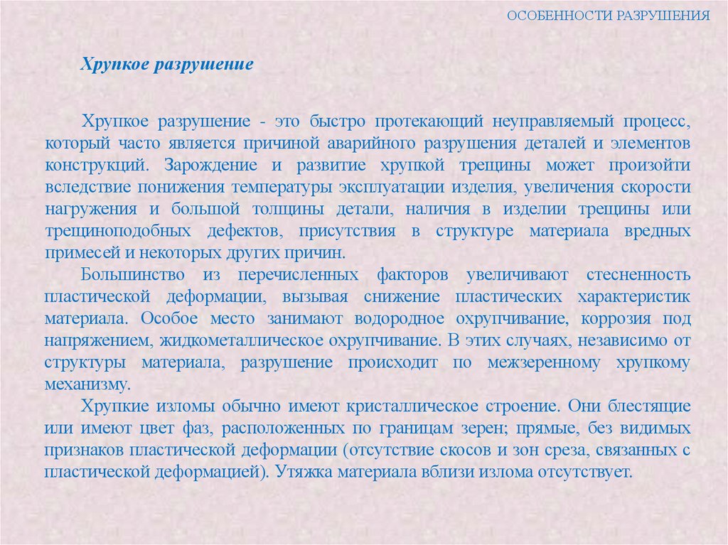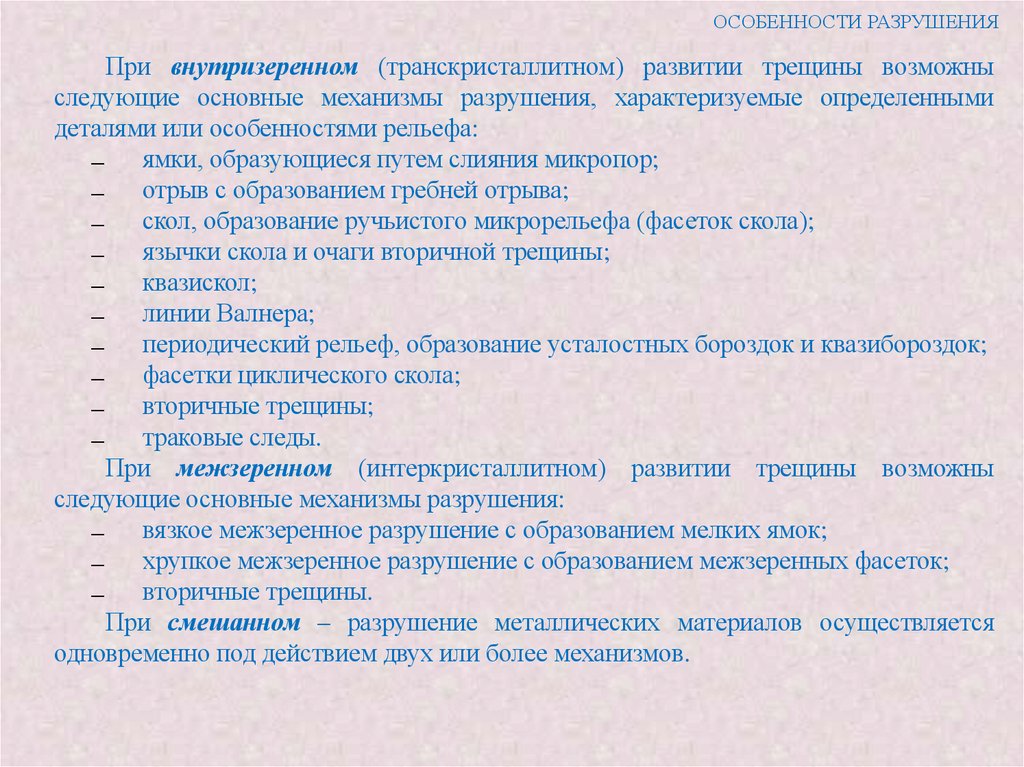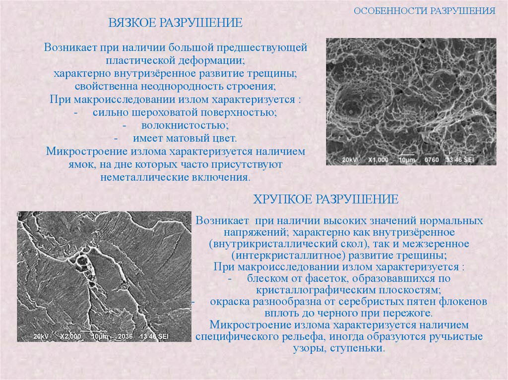 также характер разрушения - межзеренный или внутризеренный. Однако