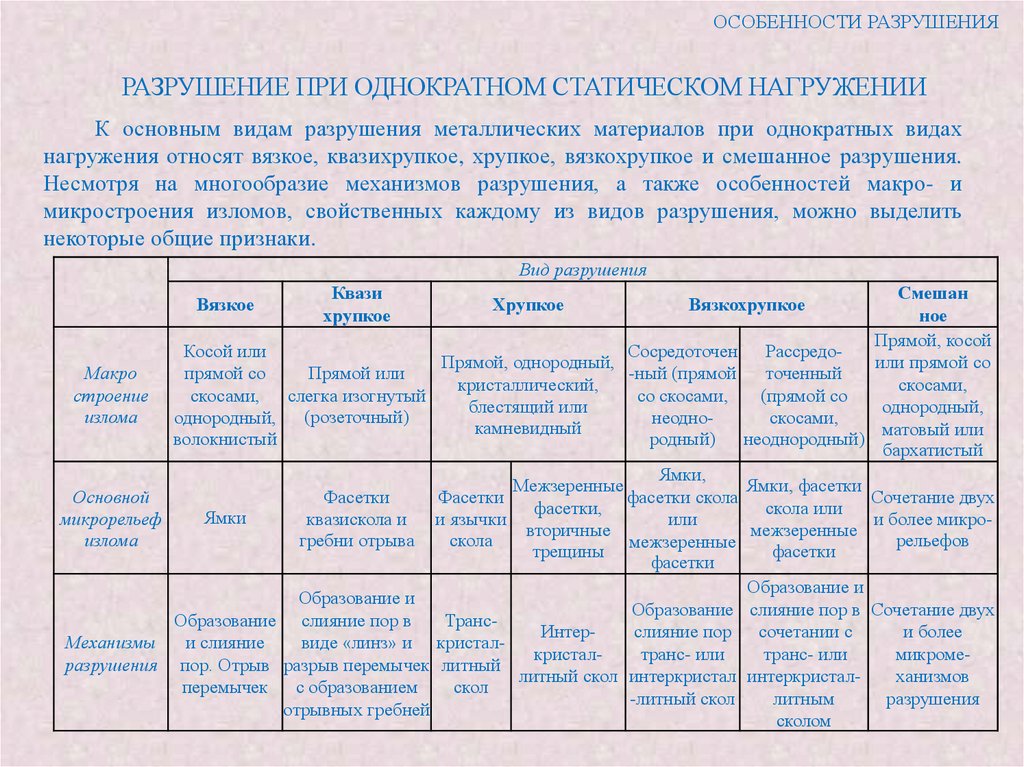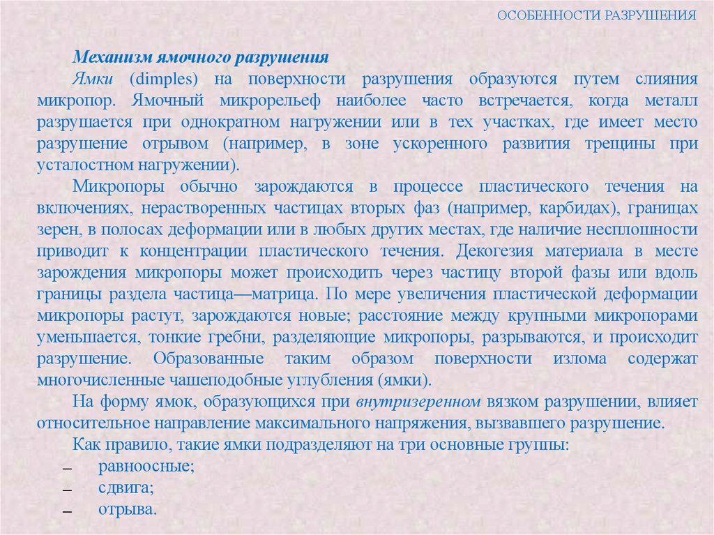 микропор, а хрупкого - по механизму внутризеренного скола или межзеренного