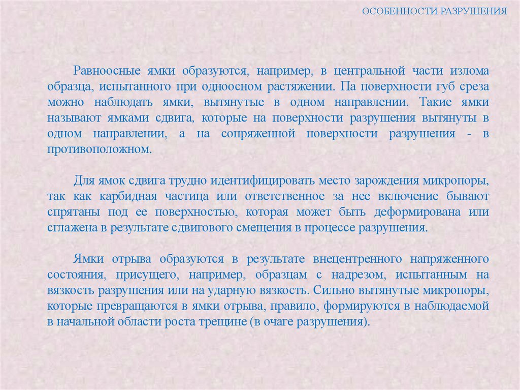 перпендикулярно поверхности разрушения, позволяет судить о характере