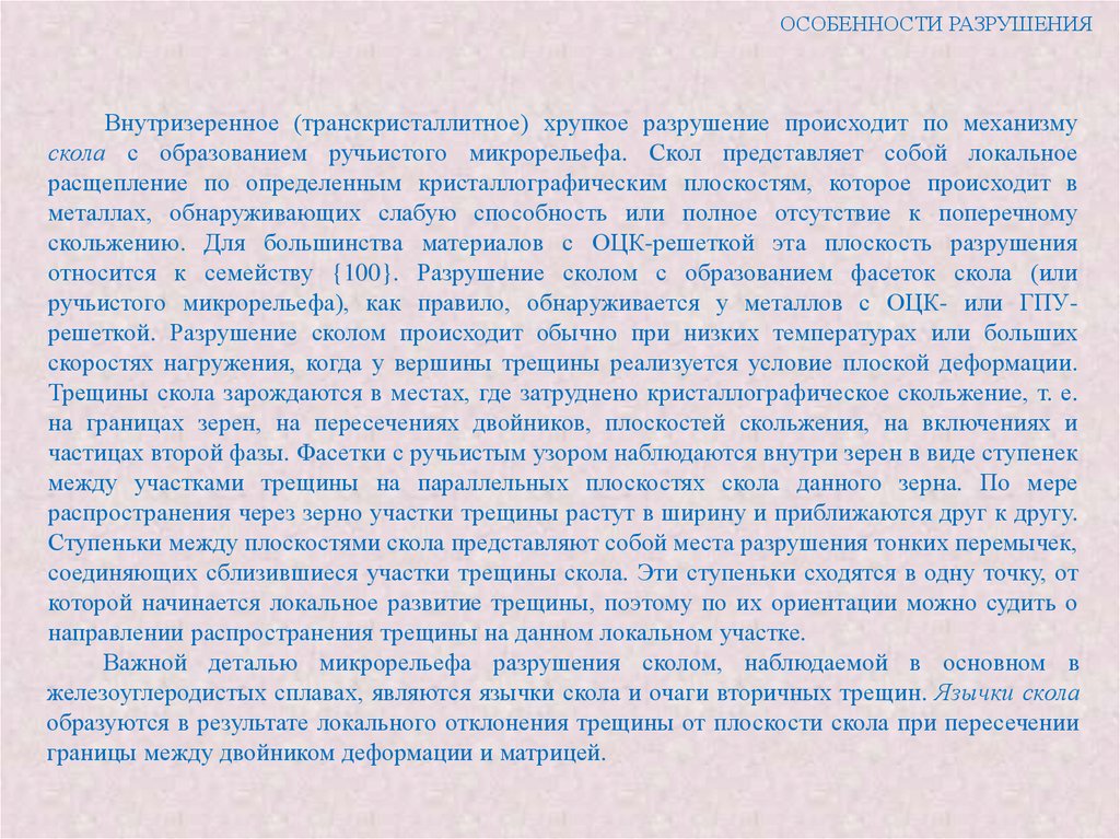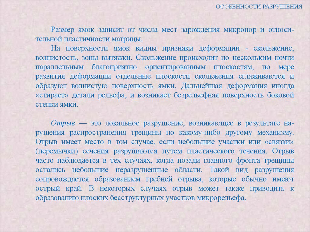 спутать с рельефом разрушения. Поверхности трещин, образовавшихся до или во