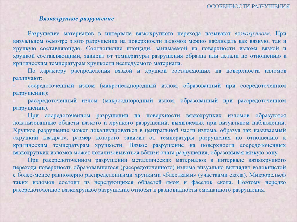 свойства материала, его способность к локальному сопротивлению разрушению, так как излом