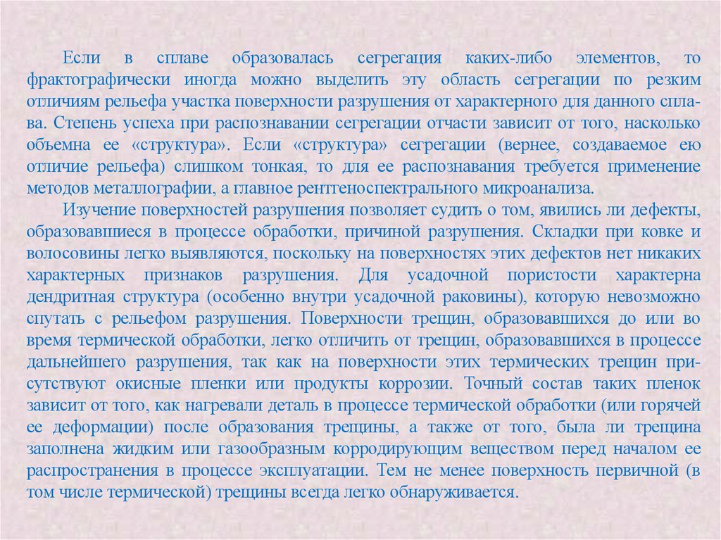 отличиям рельефа участка поверхности разрушения от характерного для данного сплава. Степень успеха при распознавании сегрегации отчасти зависит от того, насколько