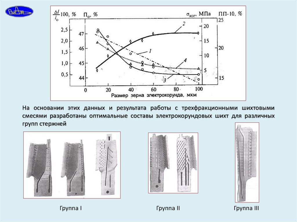 На основании этих данных и результата работы с трехфракционными шихтовымисмесями разработаны оптимальные составы электрокорундовых шихт для различных