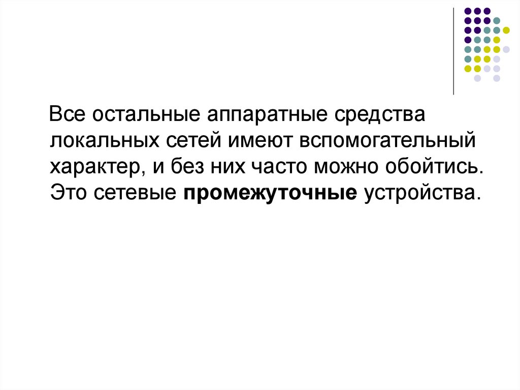 Все остальные аппаратные средствалокальных сетей имеют вспомогательный