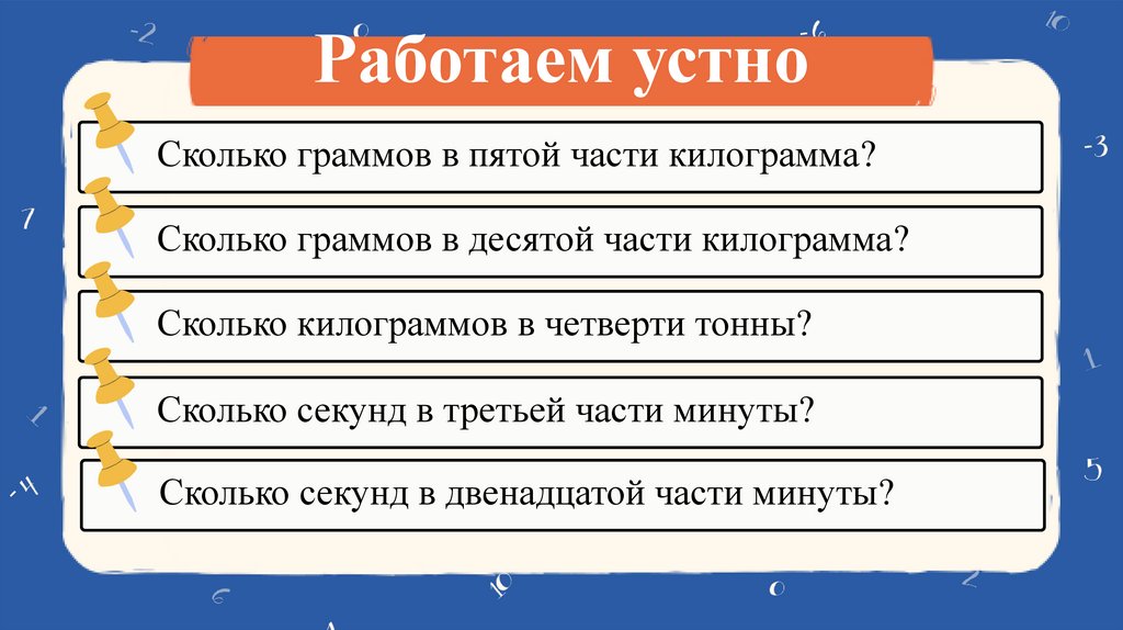 Работаем устноСколько граммов в пятой части килограмма?