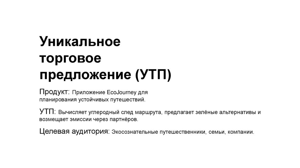 УТП: Вычисляет углеродный след маршрута, предлагает зелёные альтернативы и