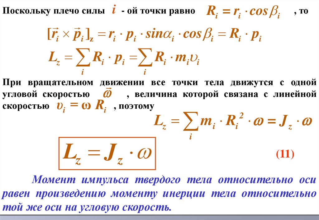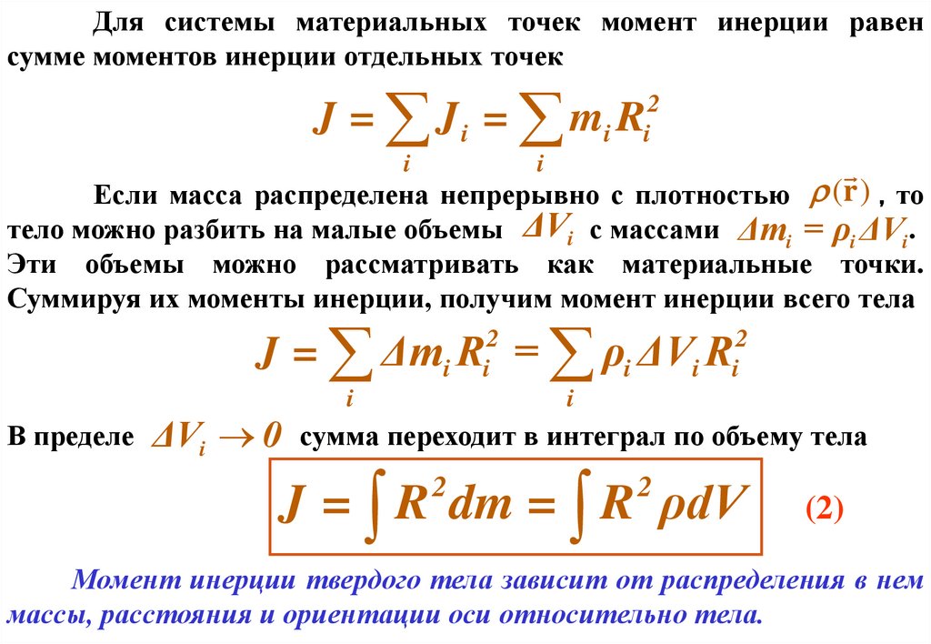 Для системы материальных точек момент инерции равенсумме моментов инерции отдельных точек