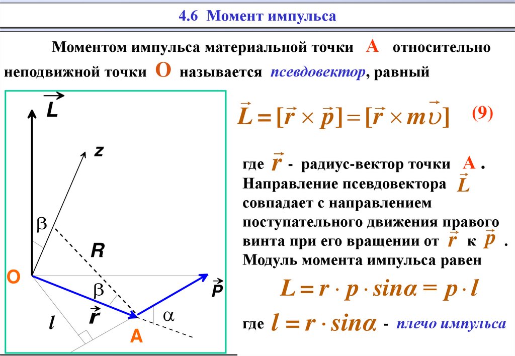 4.6 Момент импульсаМоментом импульса материальной точки А относительно