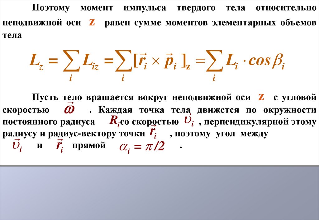 Пусть тело вращается вокруг неподвижной оси z с угловой