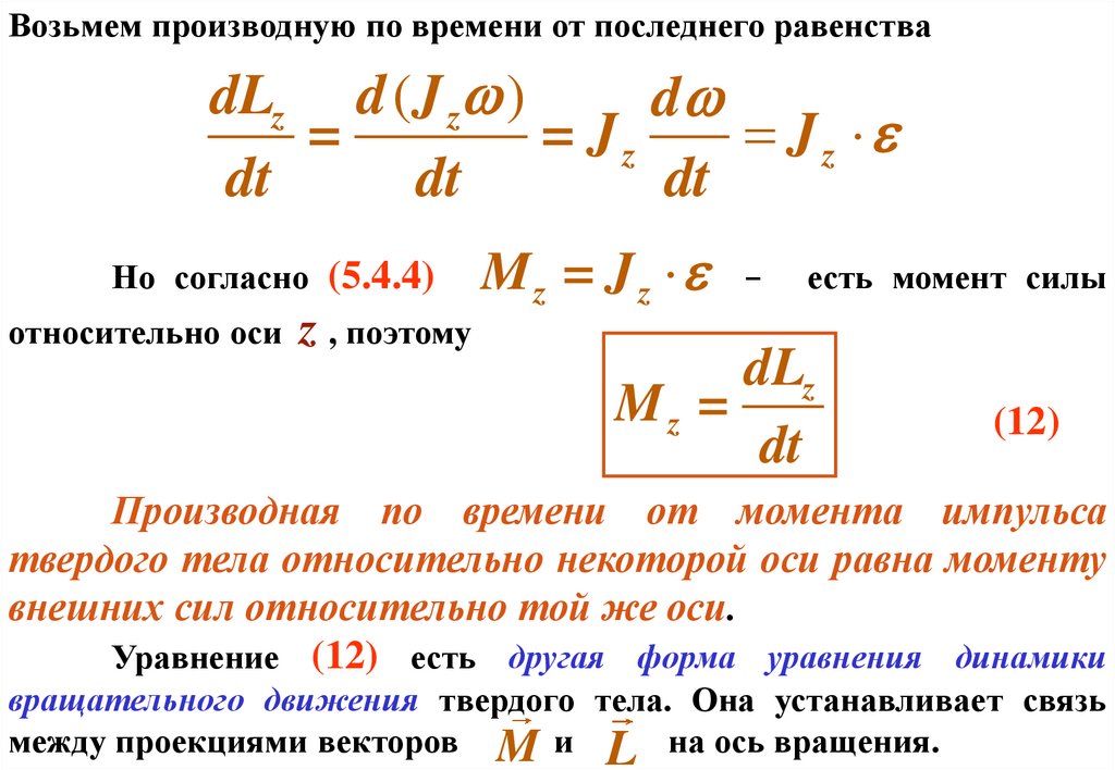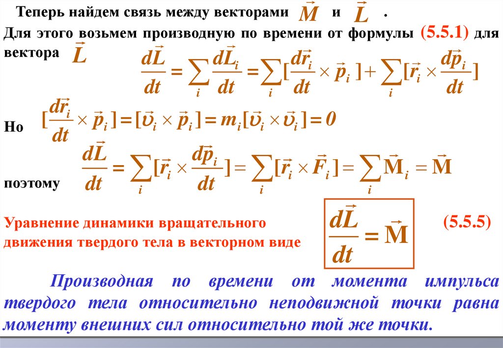 Теперь найдем связь между векторами M и L .Для этого возьмем производную по времени от формулы (5.5.1) для
