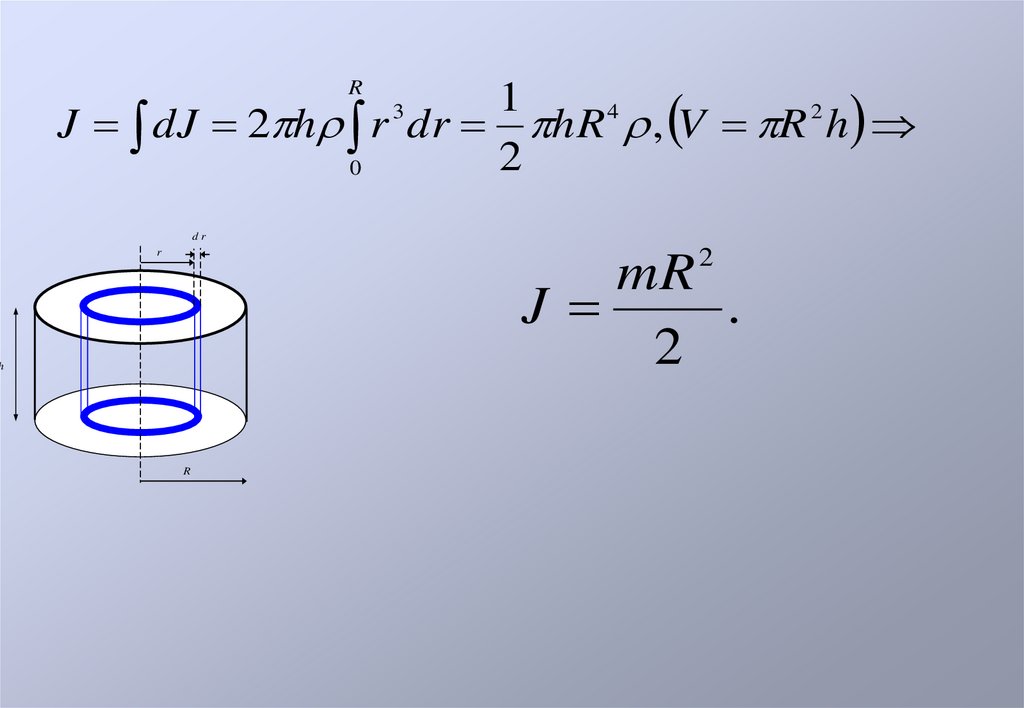 3. Пример: расчет момента инерции сплошного цилиндра радиуса R, высотой h.