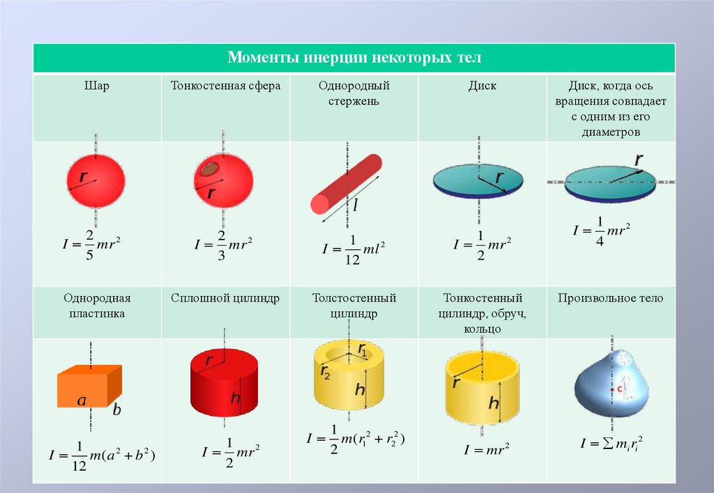 Суммируя их моменты инерции, получим момент инерции всего тела