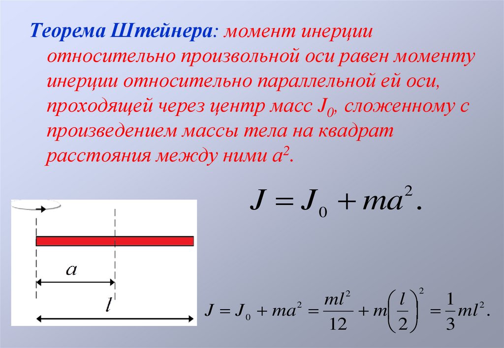 Теорема Штейнера: момент инерцииотносительно произвольной оси равен моменту
