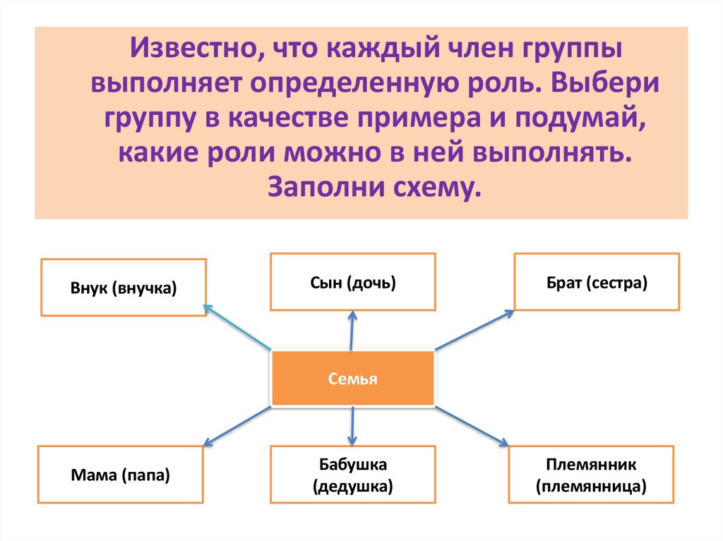 Известно, что каждый член группывыполняет определенную роль. Выбери