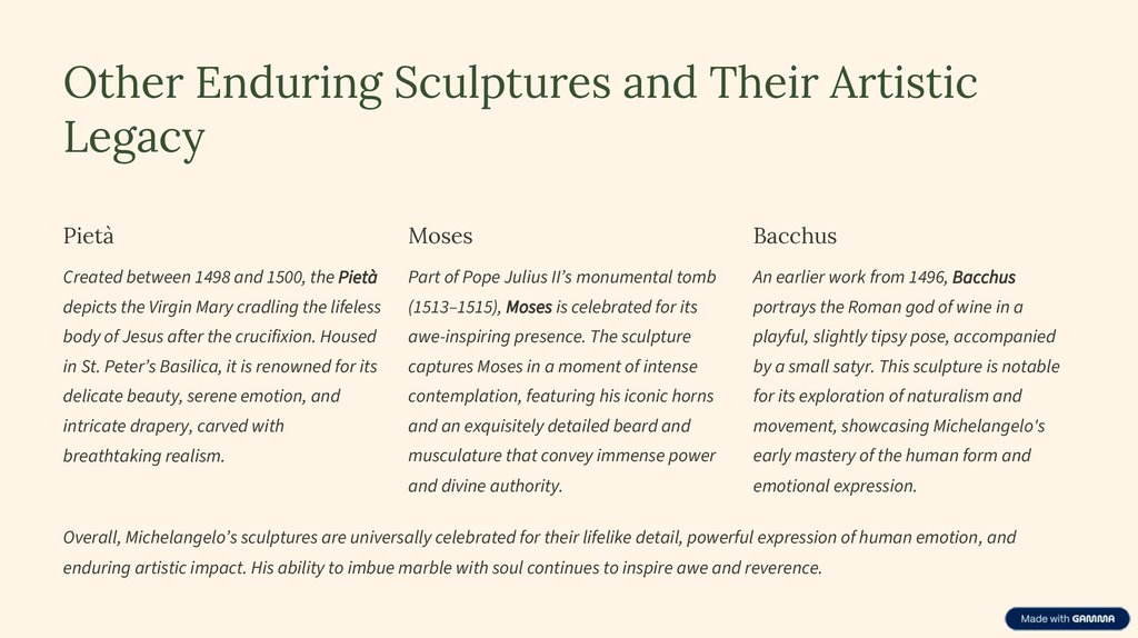 enduring artistic impact. His ability to imbue marble with soul continues to inspire awe and reverence.