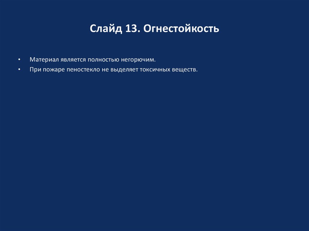 Слайд 13. ОгнестойкостьМатериал является полностью негорючим.