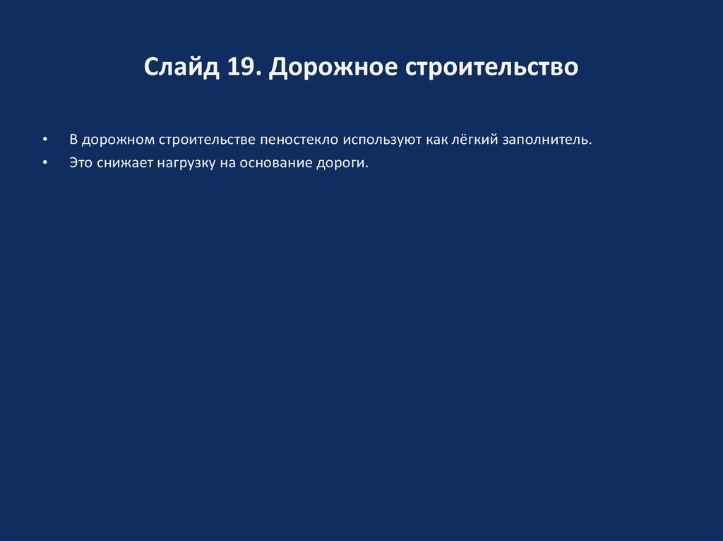 Слайд 19. Дорожное строительствоВ дорожном строительстве пеностекло используют как лёгкий заполнитель.