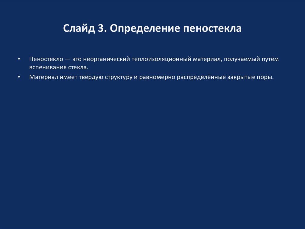Слайд 3. Определение пеностеклаПеностекло — это неорганический теплоизоляционный материал, получаемый путём
