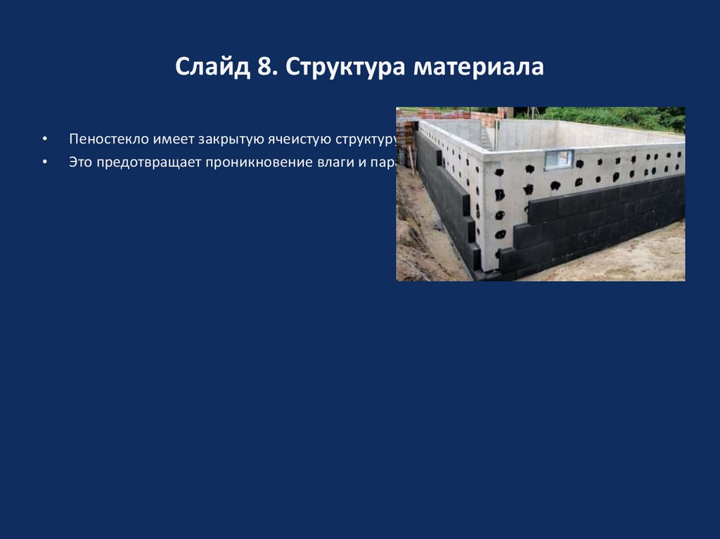 Слайд 8. Структура материалаПеностекло имеет закрытую ячеистую структуру.